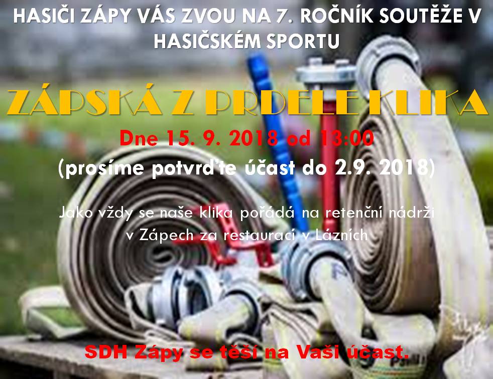 na již 8. ročník soutěže "Zápská z prdele klika" v rámci hasičského sportu . Více informací se dozvíte na letáku