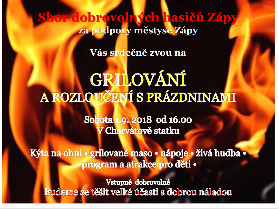 Již tradičně jako každý rok s podporou městyse Zápy Vás zveme na letní grilovačku.